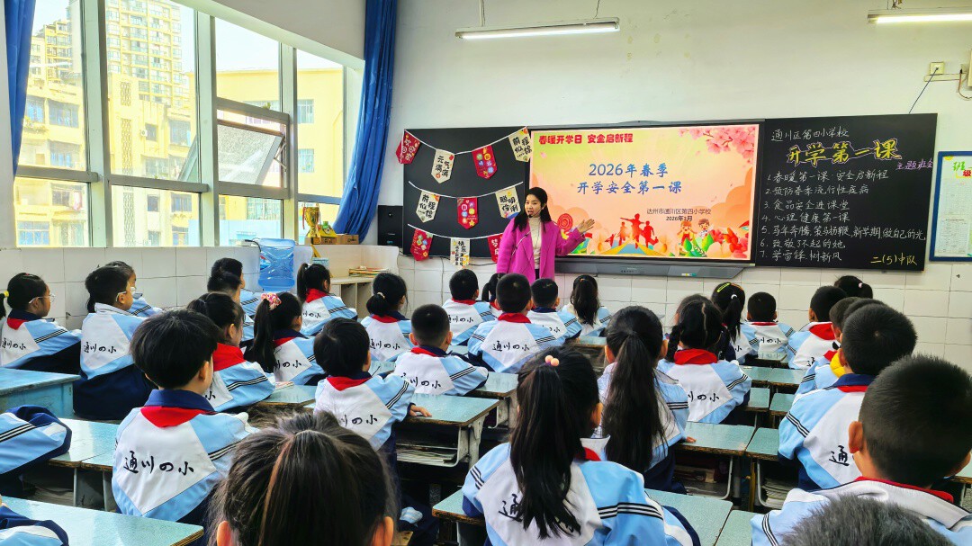 随后的开学第一课上,学校各年级分别围绕交通安全、近视防控、消防安全、防范电诈等方面内容,结合不同学段学生的认知特点分层设计、精准讲好开学第一课,共同开启新学期的美好篇章。