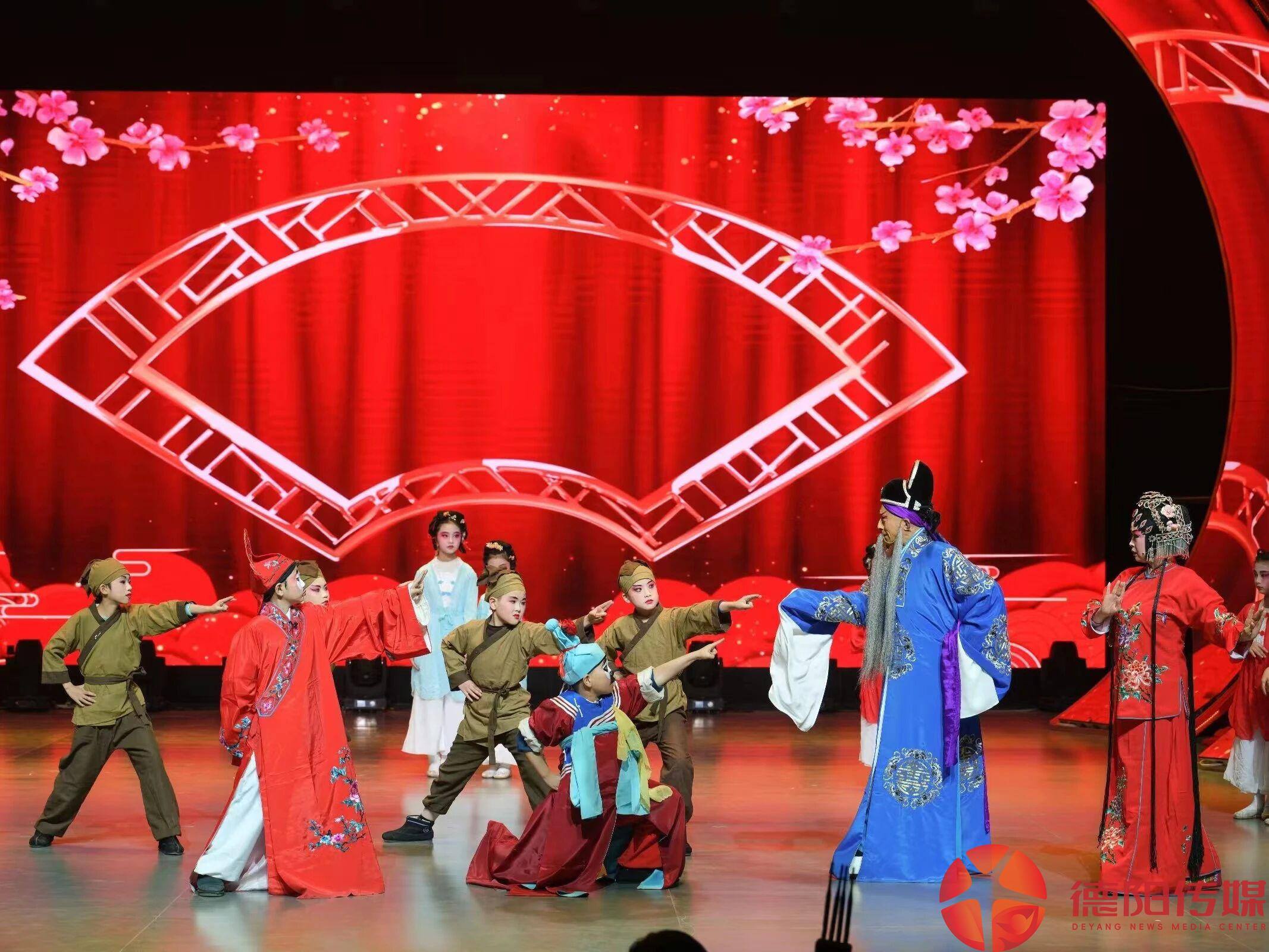广汉市金雁小学本土汉剧小戏《缠丝兔》,登上四川电视台川渝中小学生戏曲汇演颁奖晚会。