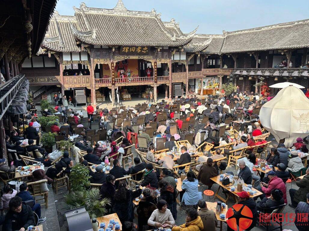 2026年春节期间,德阳孝泉武圣宫内,戏文声、锣鼓声、叫好声响成一片。