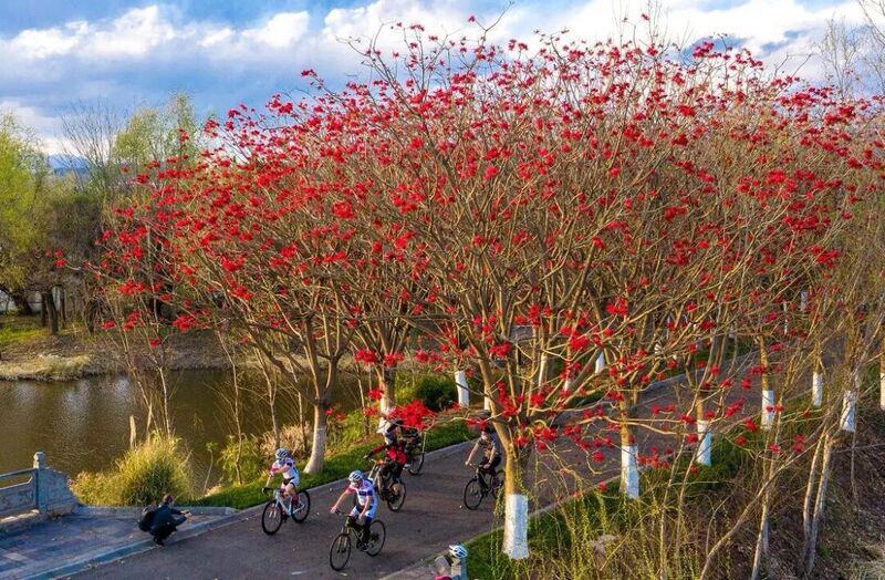 邛海湿地公园的刺桐花燃情绽放,
