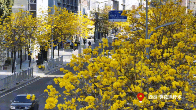 月海路的黄花风铃木一路鎏金,