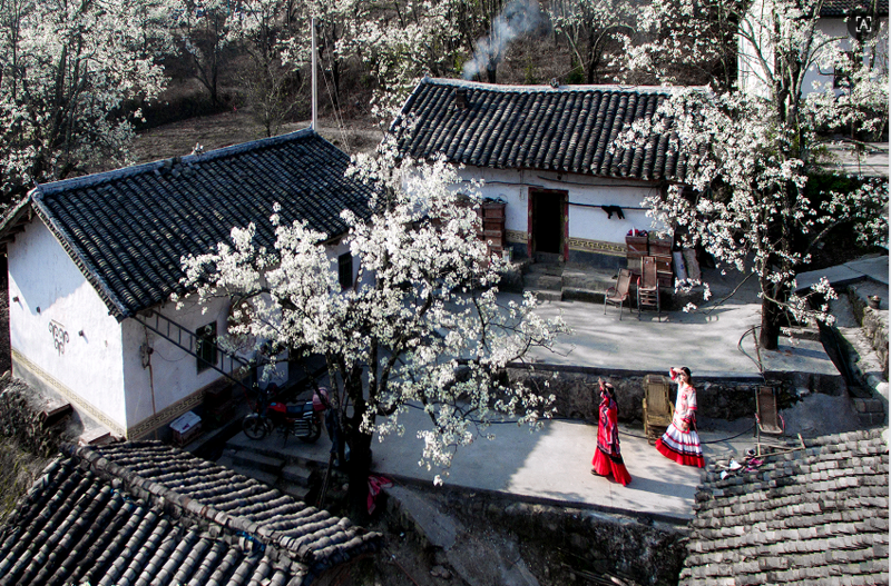 清冽素雅的花瓣轻覆彝家村寨,