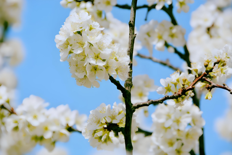 千树万树竞相绽放,如云似絮铺满山野,