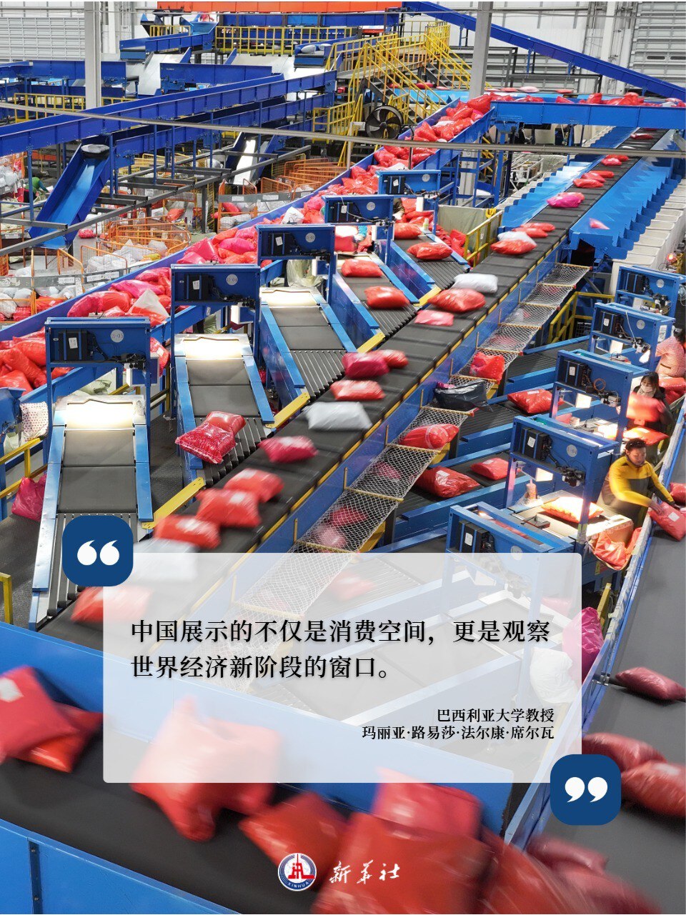 “世界经济将围绕中国市场的需求重新布局。”巴西利亚大学教授玛丽亚·路易莎·法尔康·席尔瓦说,作为拥有完整产业体系的国家,中国从“世界工厂”迈向“世界市场”,对世界经济意义深远。“中国展示的不仅是消费空间,更是观察世界经济新阶段的窗口。”