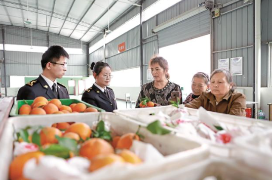 3月18日,广安市邻水县石滓镇“四季优橙”种植基地,春风拂面,硕果累累。广安海关工作人员与四川邻农臻品商贸有限公司负责人秦欣在果园里聊起今年的出口计划。