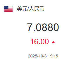 10月31日人民币对美元中间价报7.0880元 下调16个基点
