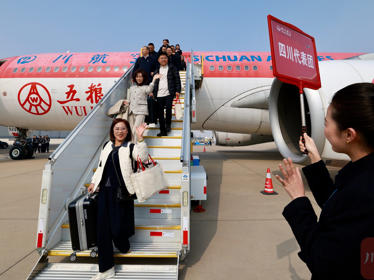 出席十四届全国人大四次会议的四川代表团抵京