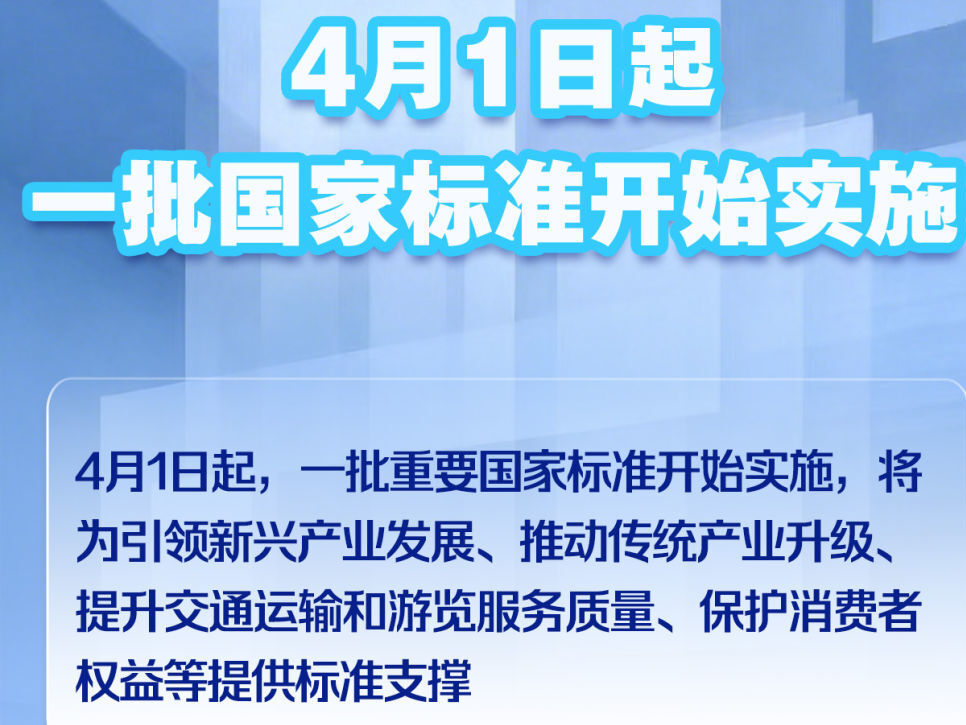 4月1日起一批国家标准开始实施