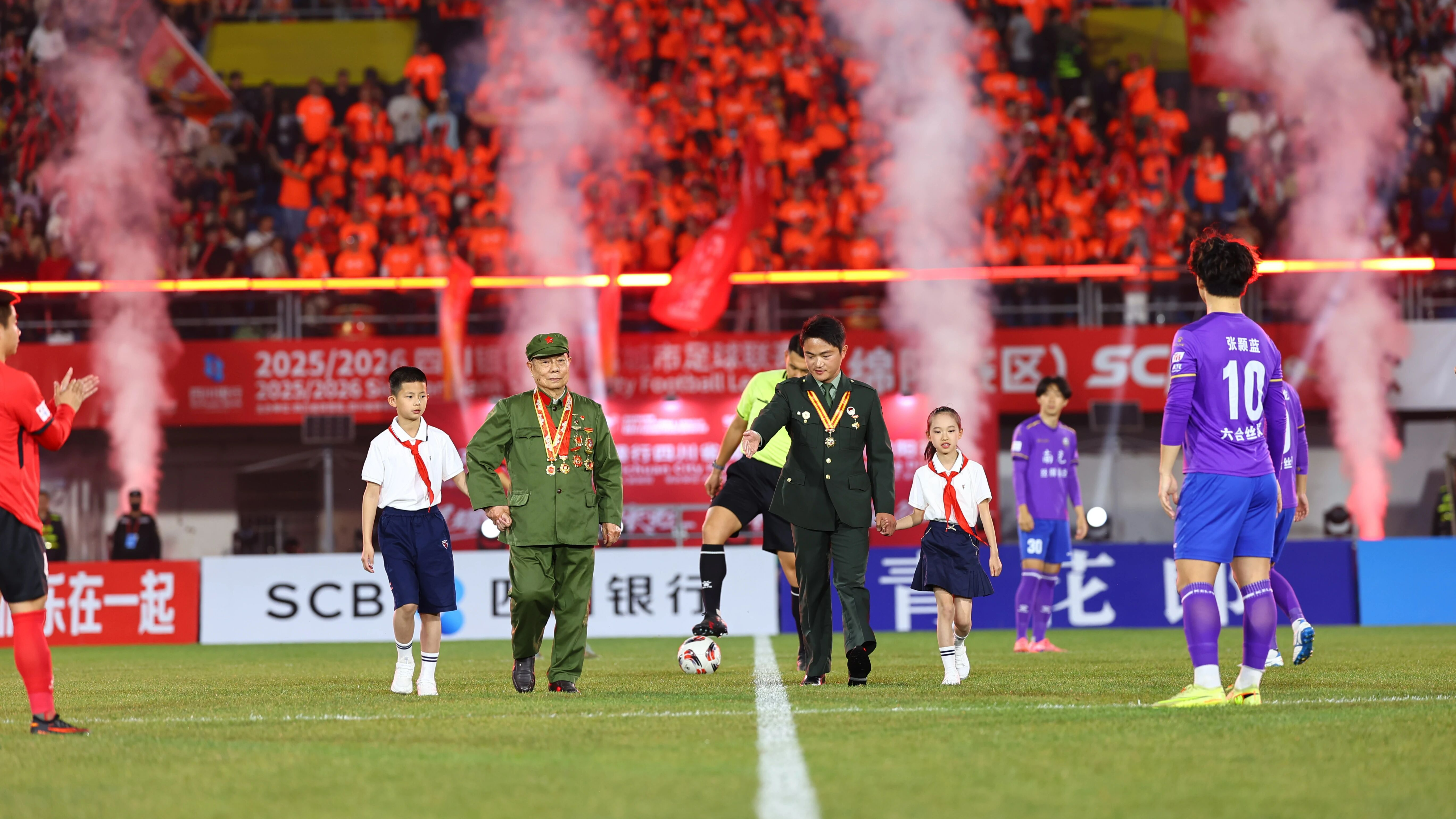 “川超”名场面丨致敬英雄!两代一等功臣为“川超”绵阳主场开球