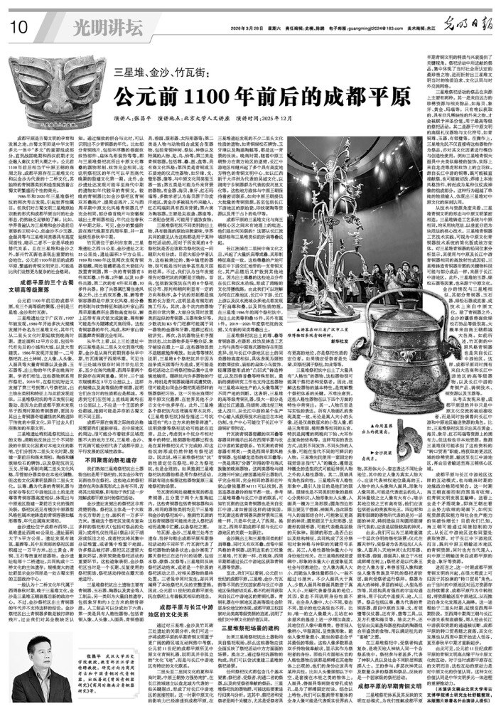 公元前1100年前后的成都平原,有三个高等级的聚落,分别是三星堆、金沙和竹瓦街。