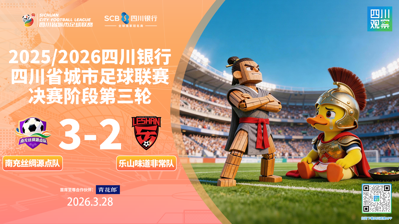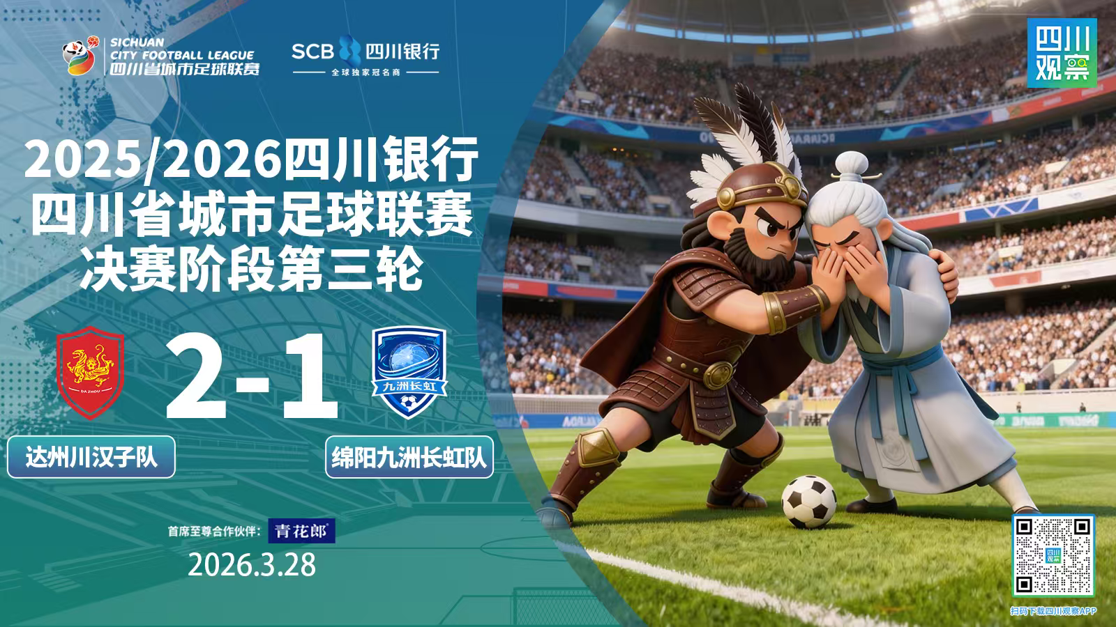 2025/2026四川银行四川省城市足球联赛(简称“川超”)决赛阶段第三轮的四场比赛已经全部结束。本轮,各队的发挥都很不错,比赛过程紧张、场面焦灼,比分差距也都比较小。