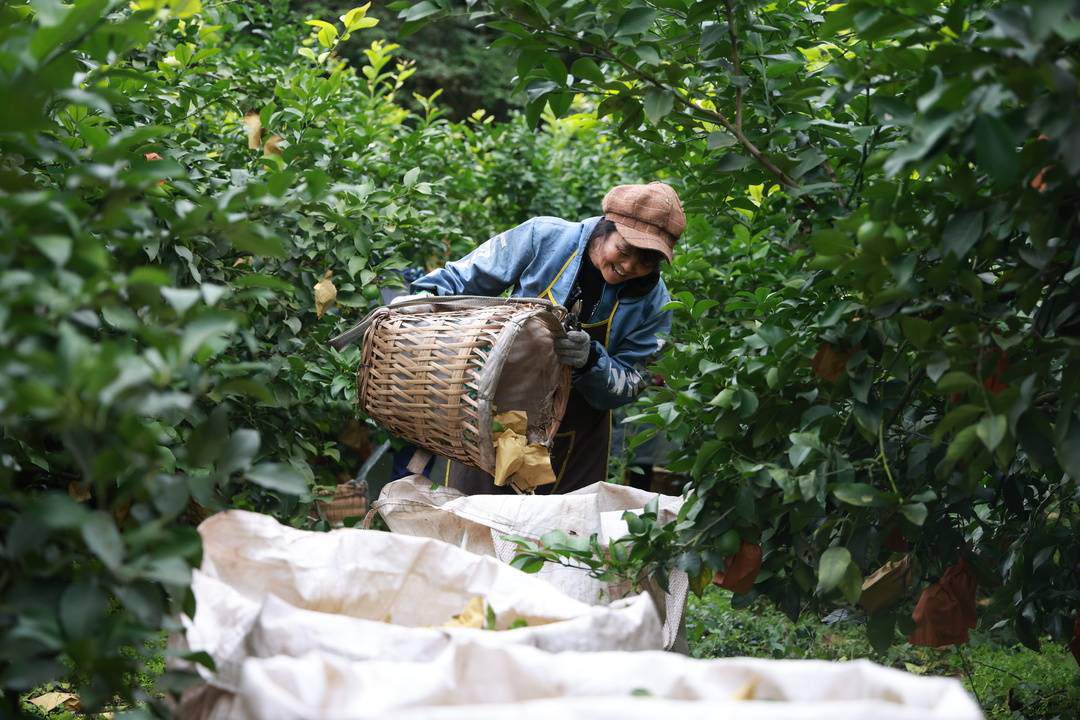 遂宁市安居区东禅镇马家桥村党支部书记冷祯东正在给柠檬疏果。安居区委宣传部供图