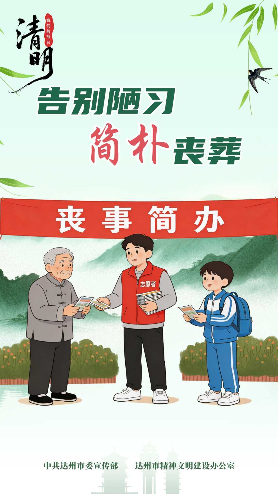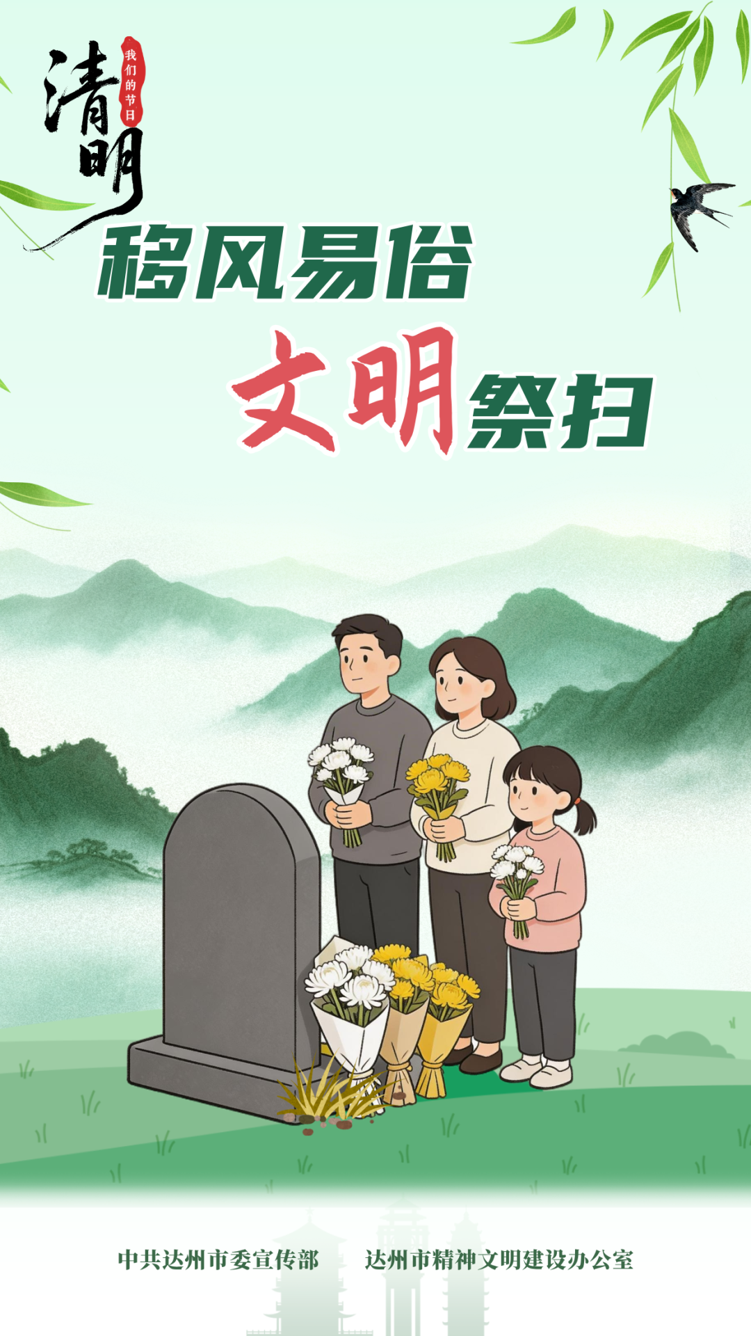 春风拂翠,草木含青,又是一年清明至。作为中华民族慎终追远、缅怀先辈、寄托哀思的传统节日,清明承载着巴渠儿女的血脉乡愁与家国情怀。为传承中华优秀传统文化,革除祭祀陈规陋习,营造“安全有序、文明简约、绿色低碳、节俭祥和”的祭扫氛围,守护达州生态环境与生态安全,达州市民政局、达州市精神文明建设办公室、达州市应急管理局、达州市林业局向全体市民倡议。