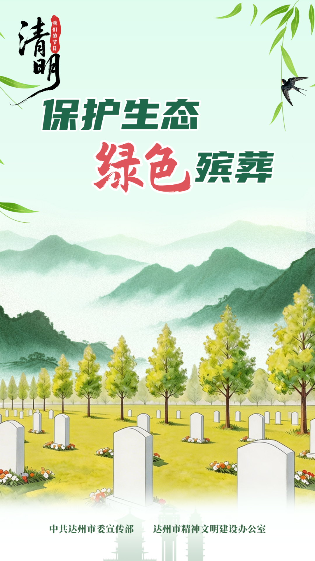 践行绿色低碳祭扫方式,切实守护好达州的绿水青山。严禁在城市道路、公园广场、林地草坪等公共场所开展污染和破坏环境的祭祀行为,优先选择鲜花、绿植、踏青遥祭等环保低碳方式,让清明更显清新文明。