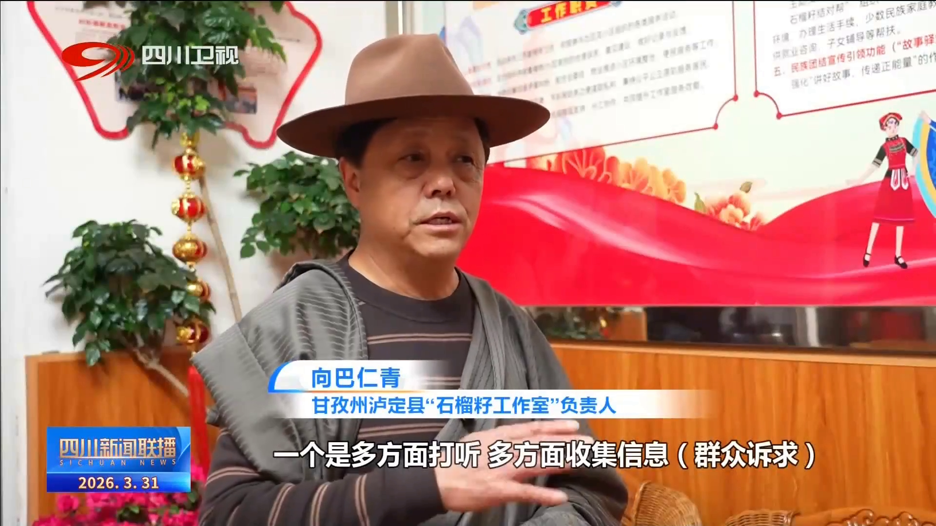 甘孜州泸定县“石榴籽工作室”负责人 向巴仁青:一个是多方面打听、多方面收集信息(群众诉求),二一个就是我们抱着“矛盾纠纷不出小区”(的原则),职责范围内能够解决的我们就地解决,不能够解决的及时反应社区。