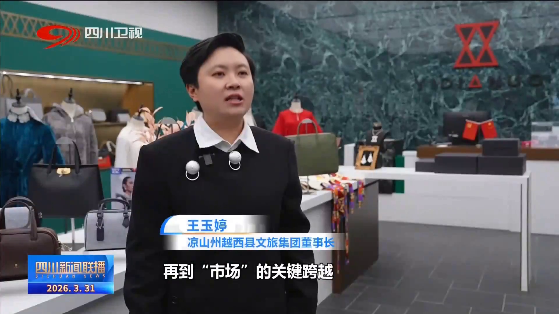 凉山州越西县文旅集团董事长 王玉婷:2025年,实现了从“生活”到“秀场”再到“市场”的关键跨越,销售额突破2300万元。我们还深挖马齿纹、太阳纹等文化元素,开发出服饰、文创、家居等系列产品,甚至远赴海南,亮相法国巴黎。