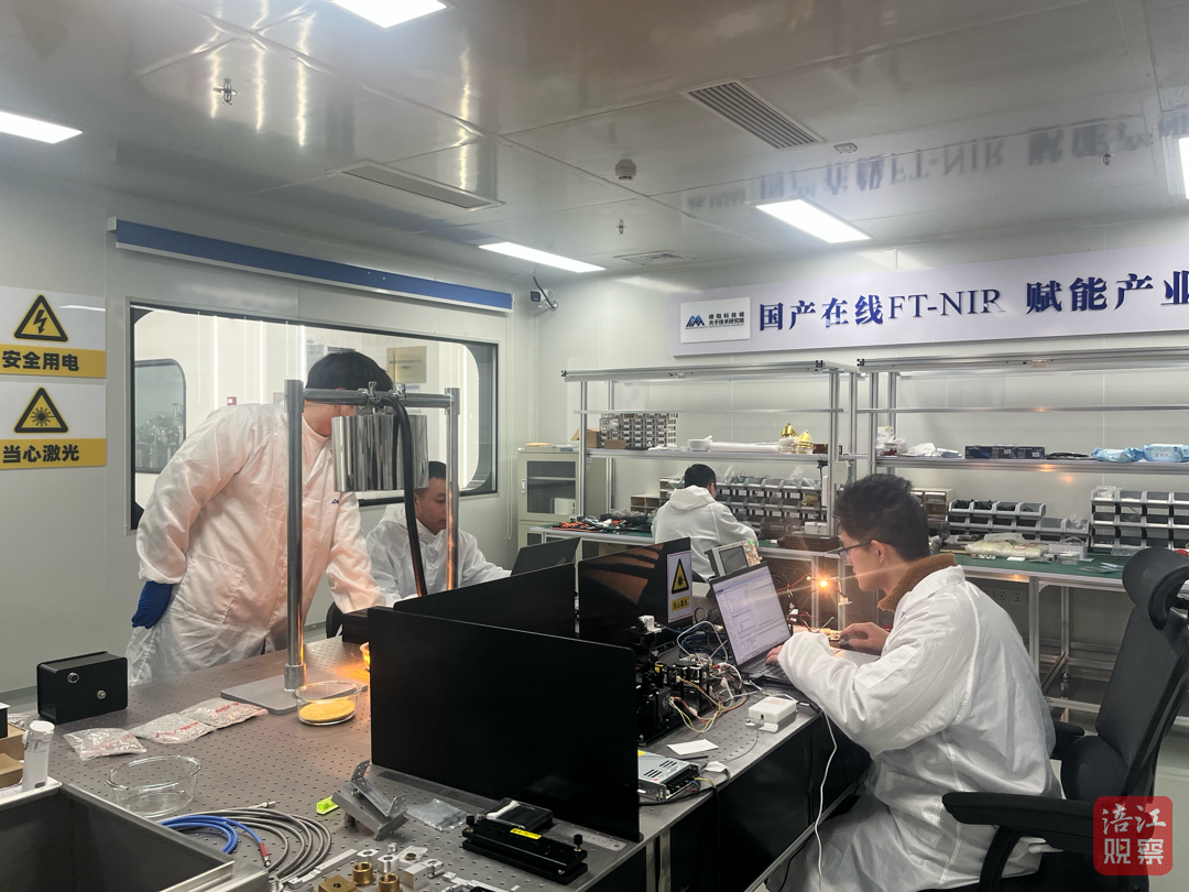 “这就像检测物体的‘指纹’一样。”近红外傅里叶变换光谱仪项目负责人马旺指着屏幕介绍道,“传统工厂实验室抽检,少则几小时,多则1天。我们最快1秒钟出结果,帮助厂家实时把控产品质量。”