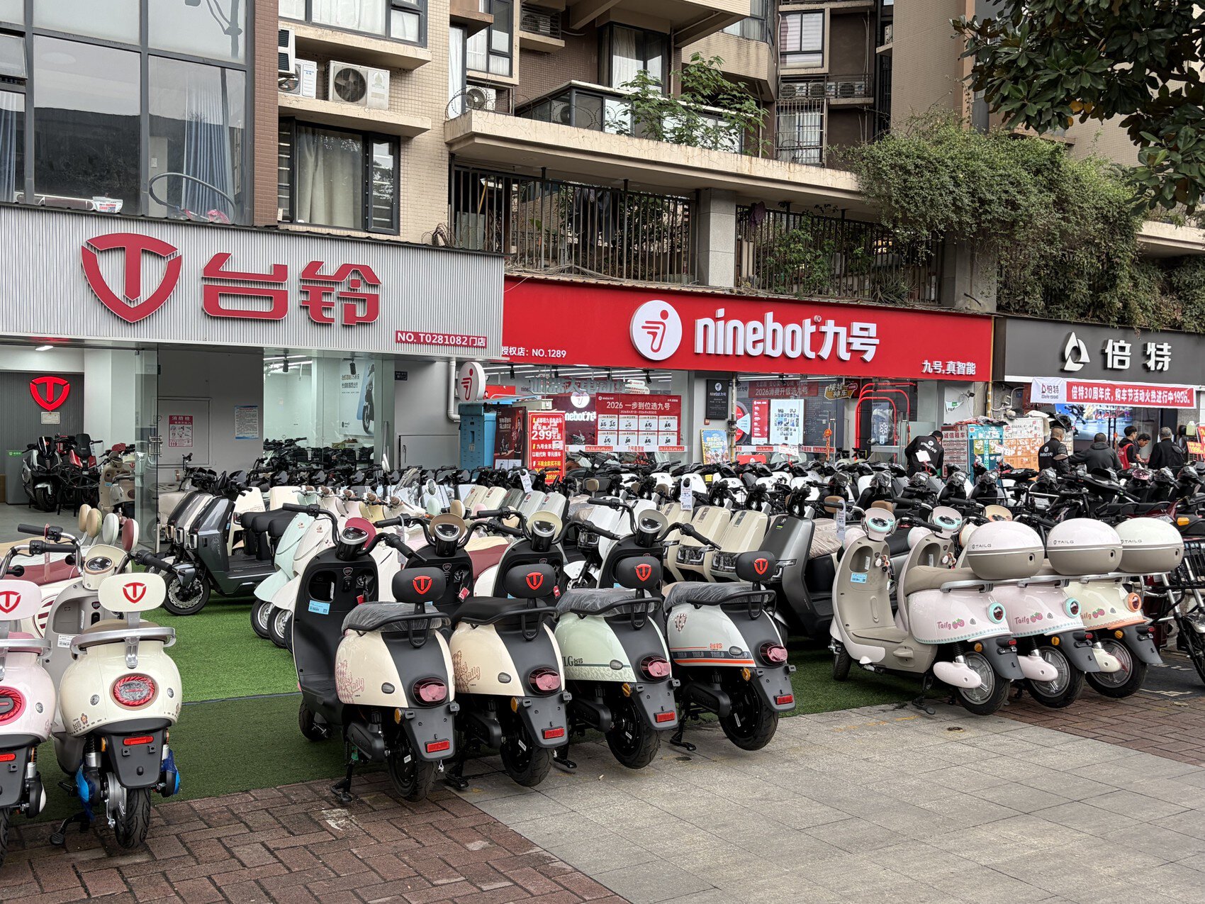位于成都解放路的几家电动两轮车门店。
