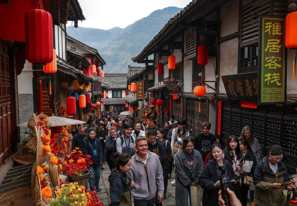 3月25日,中美嘉宾参观昭化古城。新华社发(陈居伟摄)
