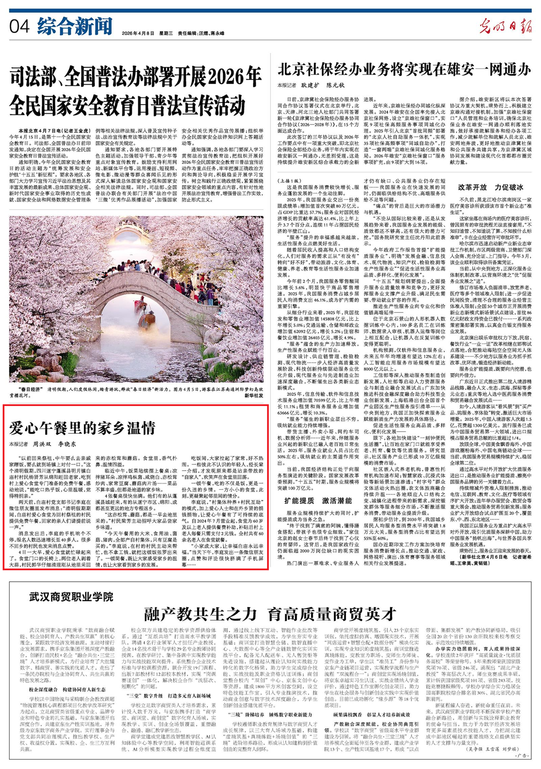 “以前回来祭祖,中午要么去亲戚家蹭饭,要么就到场镇上对付一口。”这个清明假期,四川遂宁蓬溪县明月镇白庙村村民杨贤芳从绵阳赶回老家,吃到村上爱心食堂专门准备的免费午餐,感动地说,“能吃口热乎饭,心里温暖,觉得特别亲。”