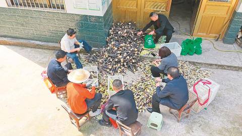 村民处理雷竹笋。