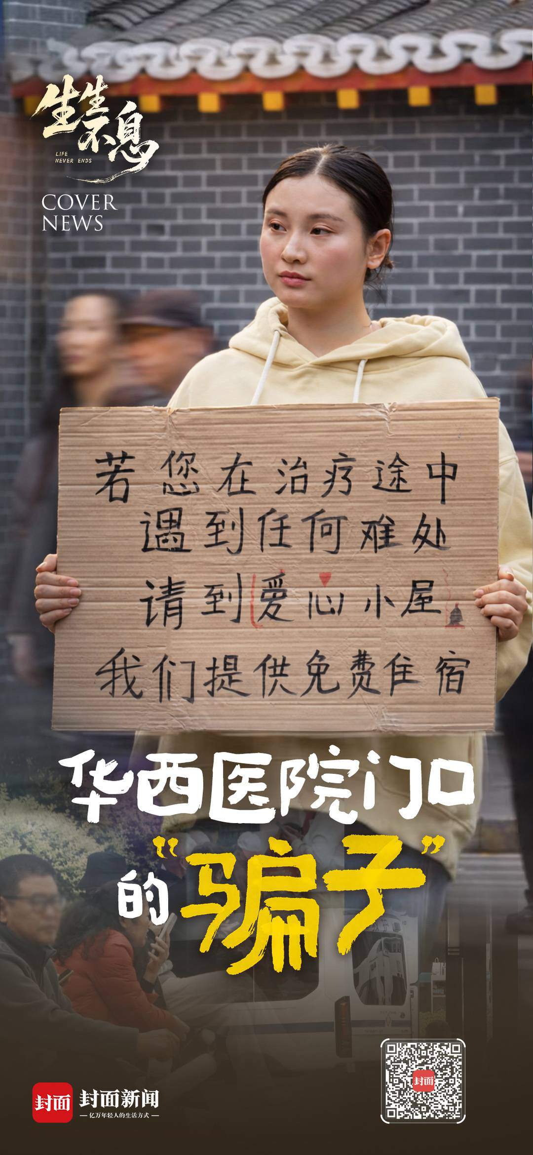 四川大学华西医院门口,永远是川流不息的人潮,裹挟着病痛、焦虑与奔波。