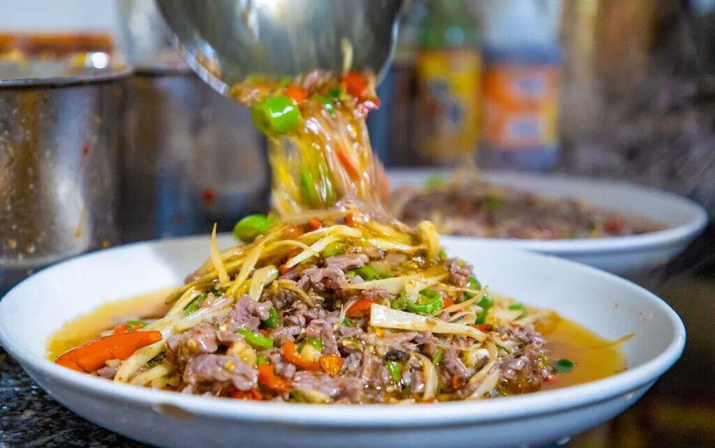“食在四川,味在自贡”绝非虚名。自贡人炒菜,火候见功夫,辣味定乾坤,每一道菜都是一场味蕾盛宴。冷吃兔、鲜锅兔、火爆腰花、艾叶鸡脚……是自贡人走到哪儿都忘不了的美味,每一口都是极致的麻辣鲜香,藏着盐都人最直接的热情。