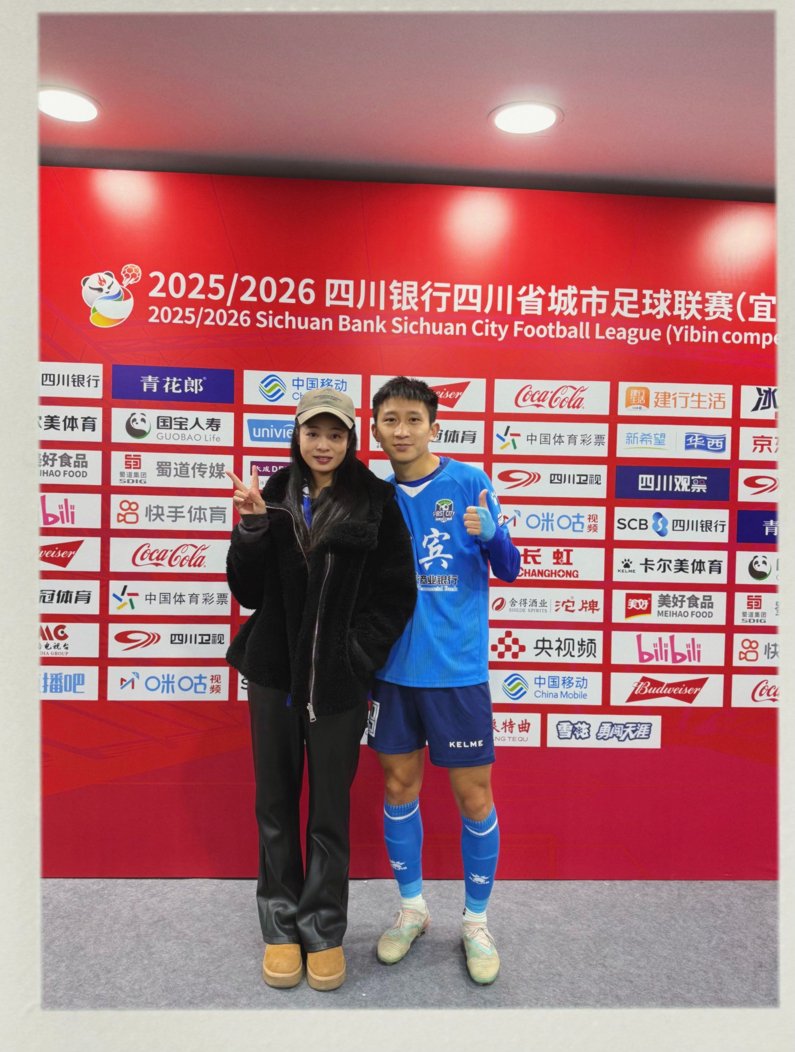 “遇到挫折困难的时候,我也曾想过打退堂鼓,但每次训练结束后,跟妻子倾诉完,她都会鼓励我,让我坚持下去。因为她,我才更坚定地继续站在这个球场上。”作为宜宾队的边后卫,小伙儿贾鑫龙对记者坦言,川超的赛场让他对足球的热爱获得了“新生”的机会,而在他的家庭里,一个真正的“新生”也在悄悄酝酿。