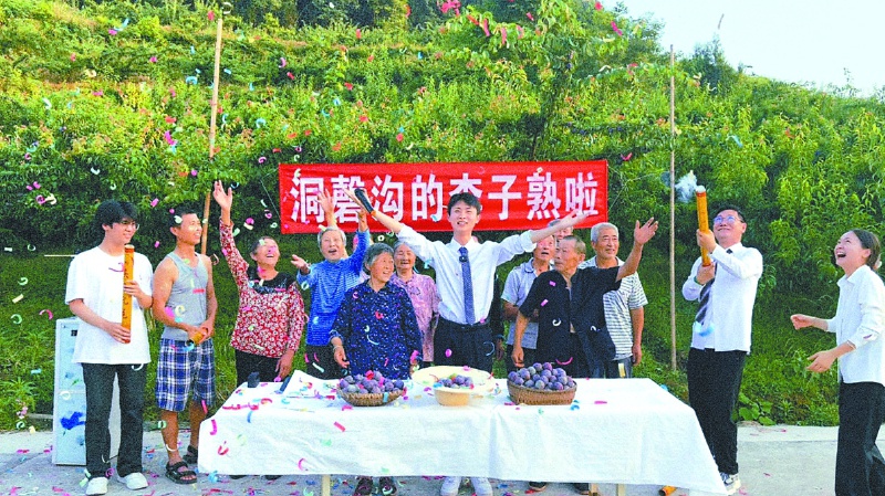 每到李子丰收季,周健康都会牵头在村口举办“李子熟了发布会”,拿着话筒对着镜头,热情地向全国网友推介家乡鲜果。从采摘、分拣到打包、发货,一个个就业岗位应运而生,村里数百名留守老人不用远走他乡,在家门口就能挣到稳定收入,脸上的笑容越来越多。在他的带动下,洞磬沟村发生了翻天覆地的变化,乡村焕发新活力。