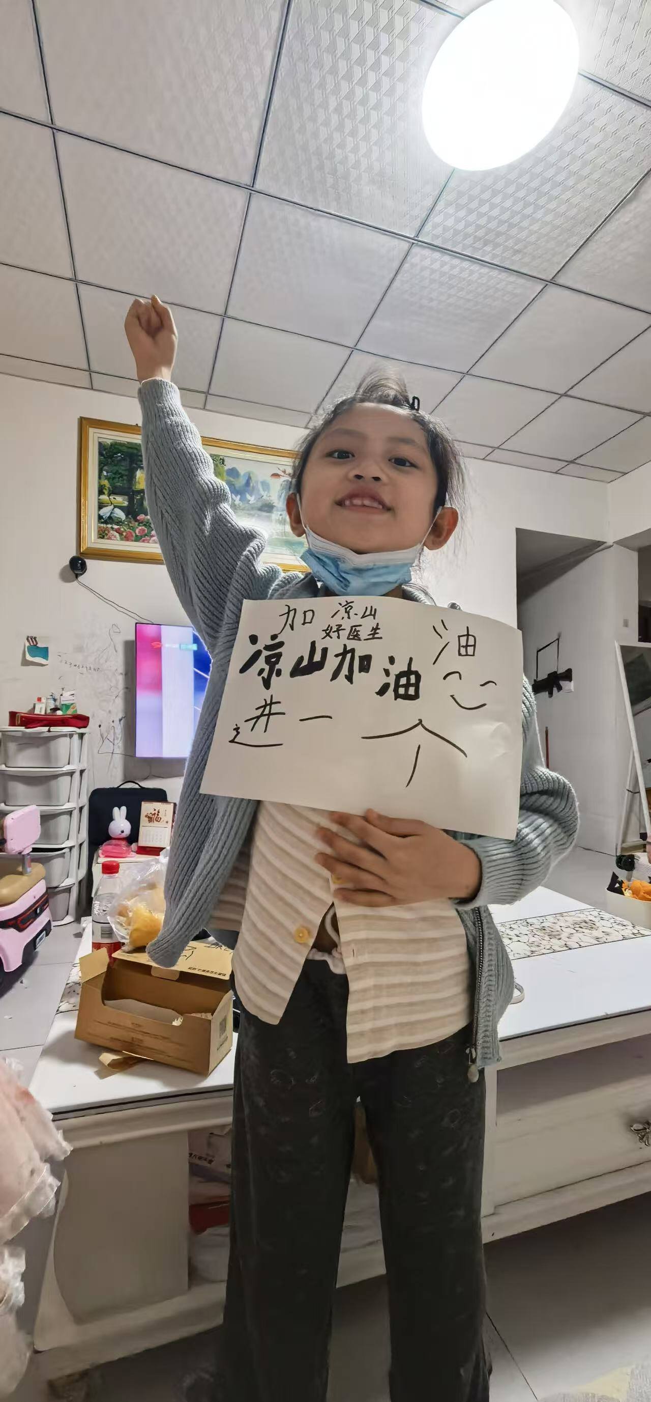 巫睿祎小朋友为凉山队加油。