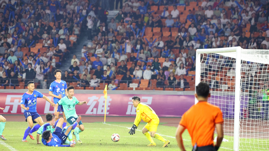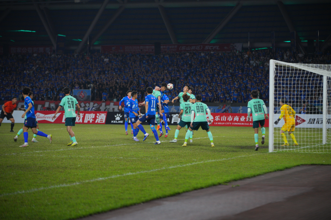 比赛伊始,主场作战的乐山味道非常队迅速进入状态,凭借主场优势主动发起进攻,攻防节奏紧凑有序。第14分钟,乐山队抓住角球机会,5号球员阿布都沙拉木·艾尼瓦尔头球破门,打破场上僵局,乐山队1:0取得领先,现场气氛瞬间被推向高潮。领先后的乐山队并未松懈,继续加强攻势,多次创造有威胁的射门机会,宜宾队则立足防守,伺机寻找反击突破口。