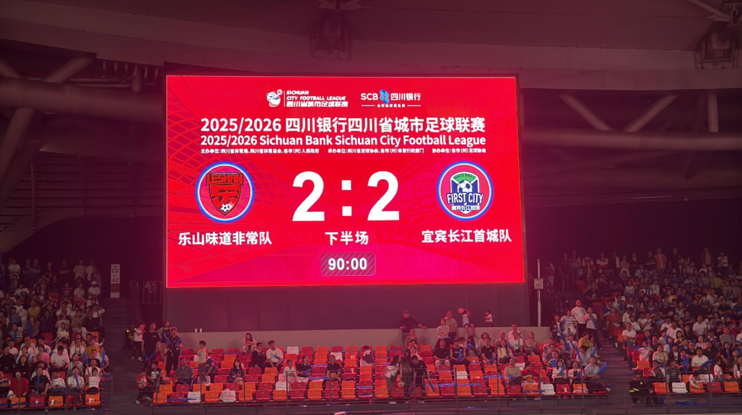 4月18日晚,乐山奥林匹克中心灯火璀璨、人声鼎沸,2025/2026四川银行四川省城市足球联赛决赛阶段第六轮焦点战在此上演。主场作战的乐山味道非常队凭借两名球员的进球一度领先,客场挑战的宜宾长江首城队顽强反击,最终双方以2:2握手言和,为现场球迷呈现了一场跌宕起伏、充满体育精神的岷江德比盛宴。