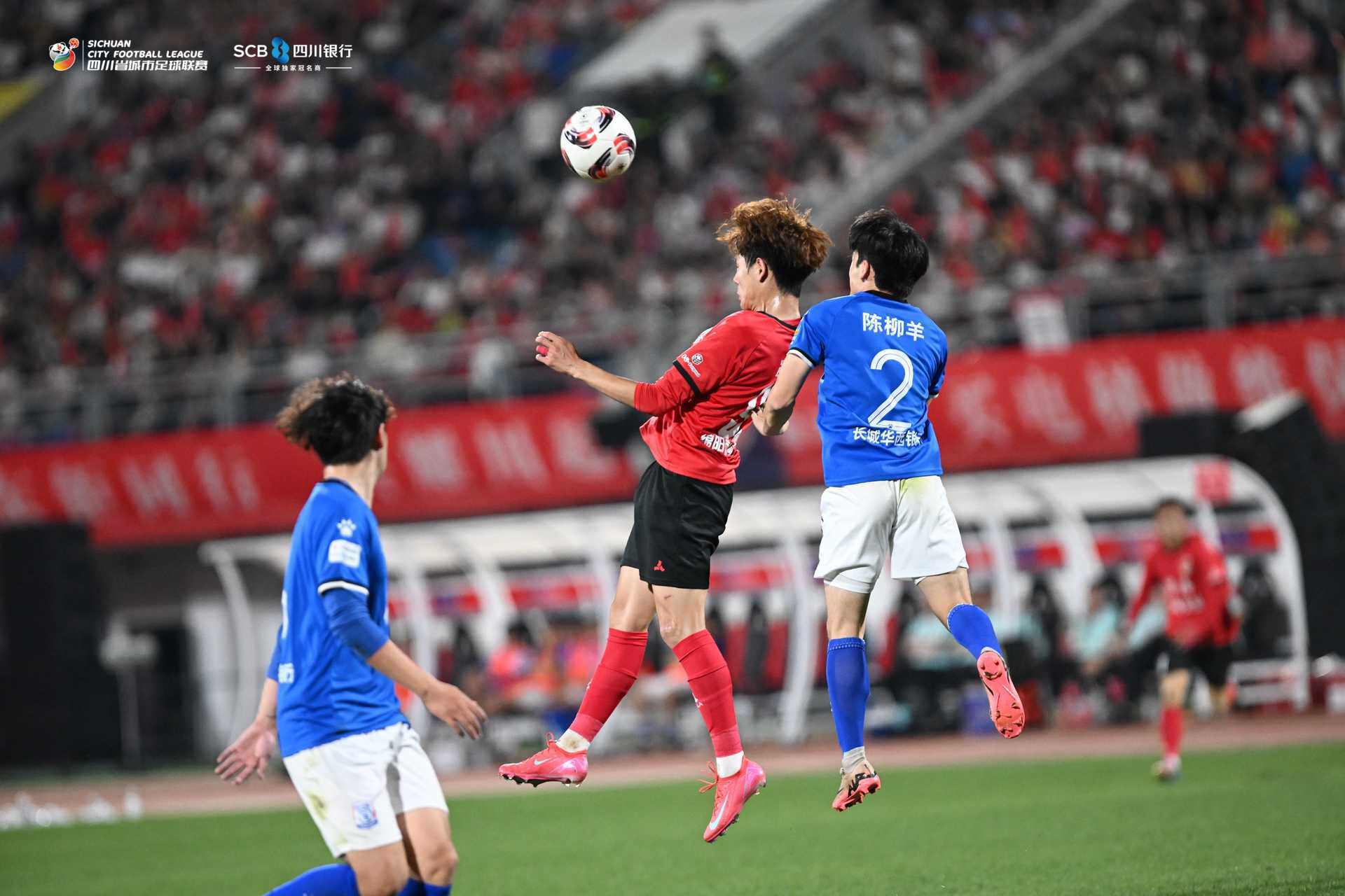 第28分钟,宜宾队99号罗子涵同样利用角球头球扳平,1:1。