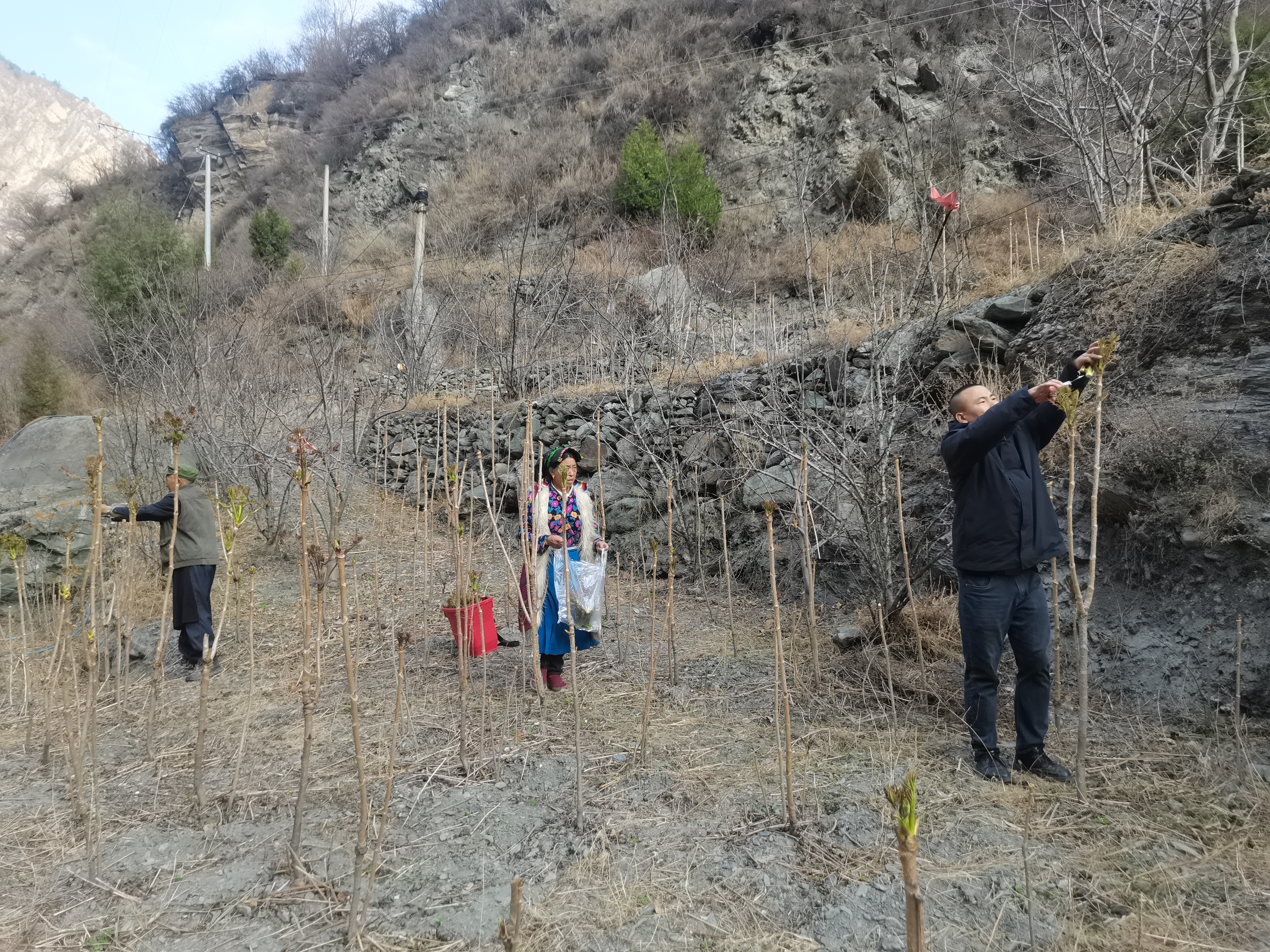 恰在此时,正在蒲溪乡河坝村开展联系帮扶的阿坝州生态保护和发展研究院,也在琢磨同一件事。研究院在日常走访中发现,蒲溪乡的气候、土地和劳动力条件,非常适合种植一种作物——刺龙苞(学名:楤木)。它市场俏、价格稳,管护简单,采收期刚好在3月,老百姓2至3月种下、4月就能安心外出打工。