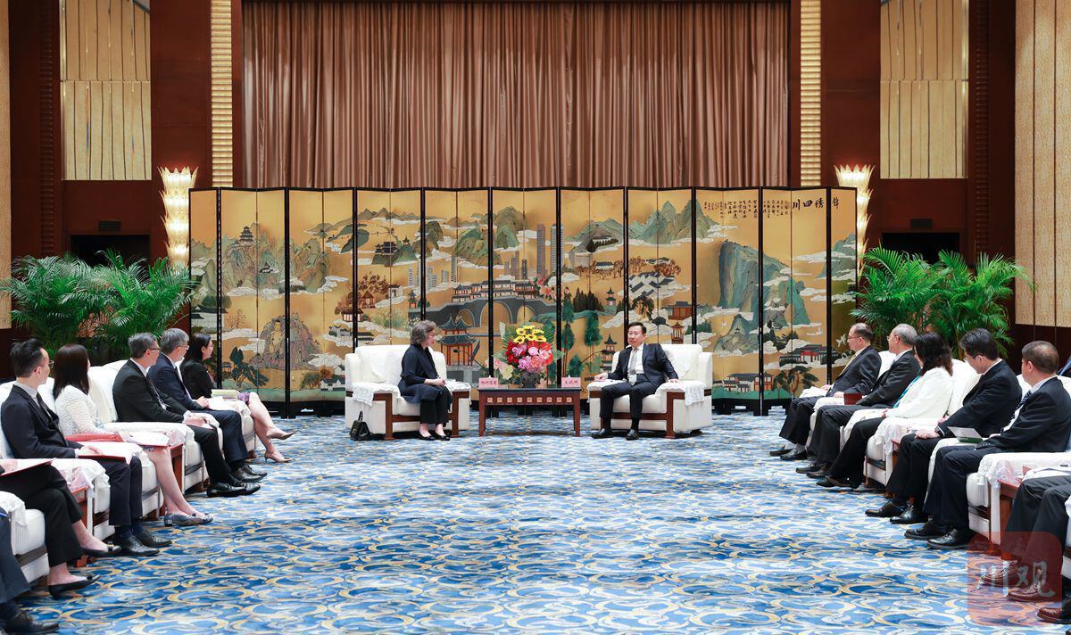 4月23日,省委书记、省人大常委会主任王晓晖在成都会见由香港特区政府公务员事务局局长杨何蓓茵率领的香港特区政府常任秘书长及部门首长国家事务研修班全体学员。