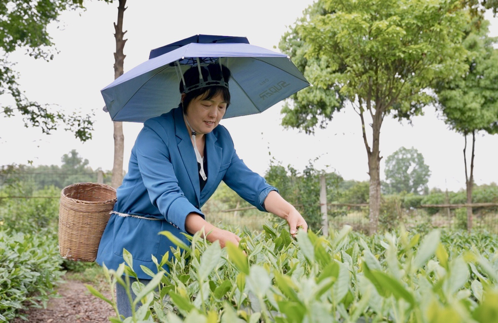 卢树盈在茶园里采茶