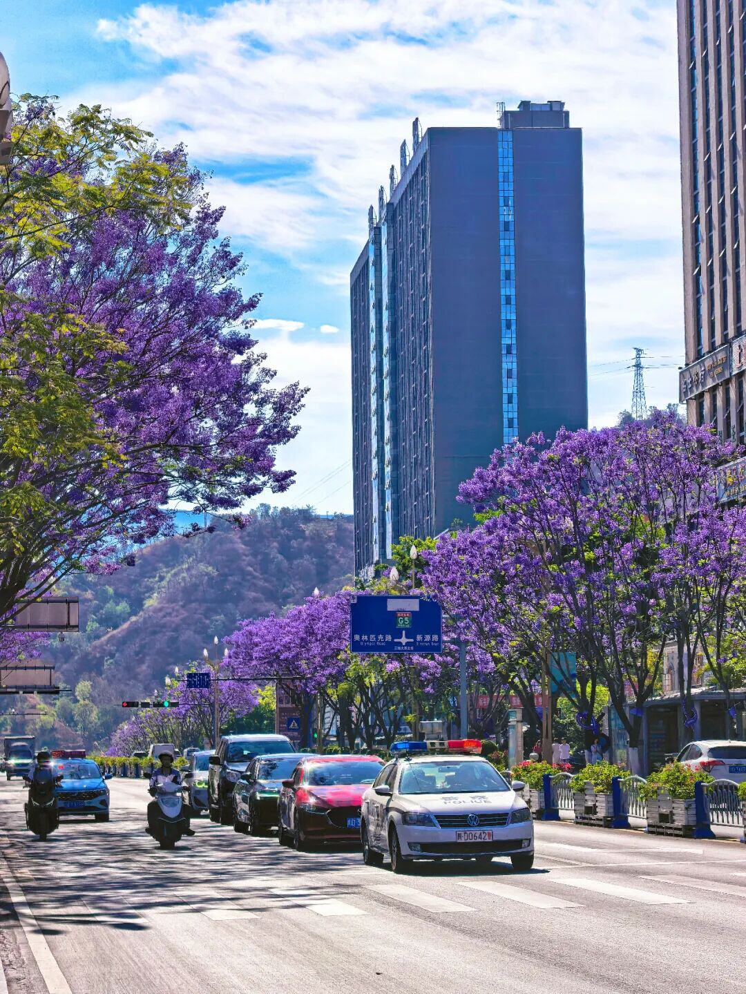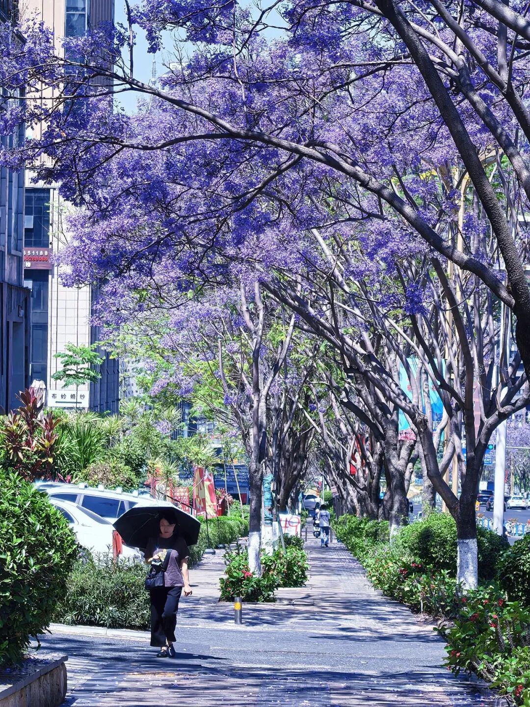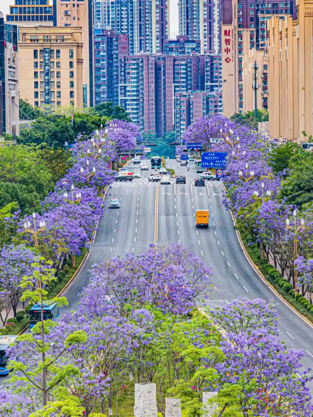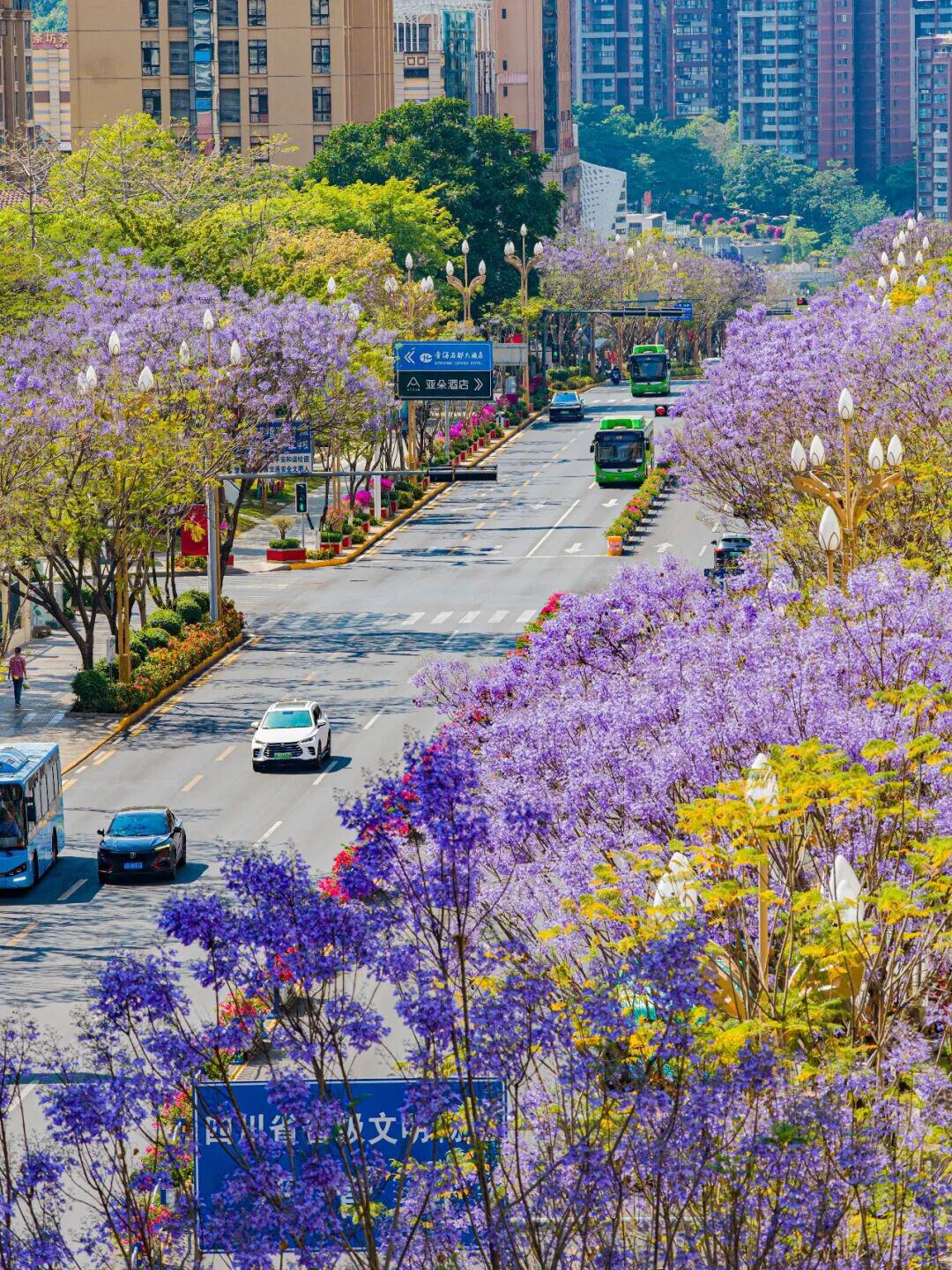 古有孟昶在成都遍种芙蓉花,今有攀枝花遍种蓝花楹。