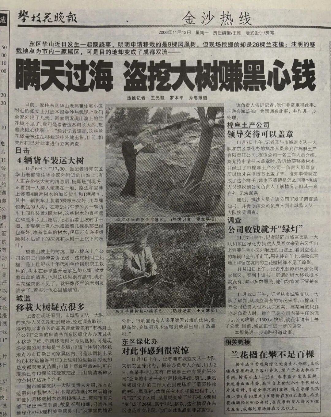 《攀枝花晚报》报道蓝花楹被盗挖事件