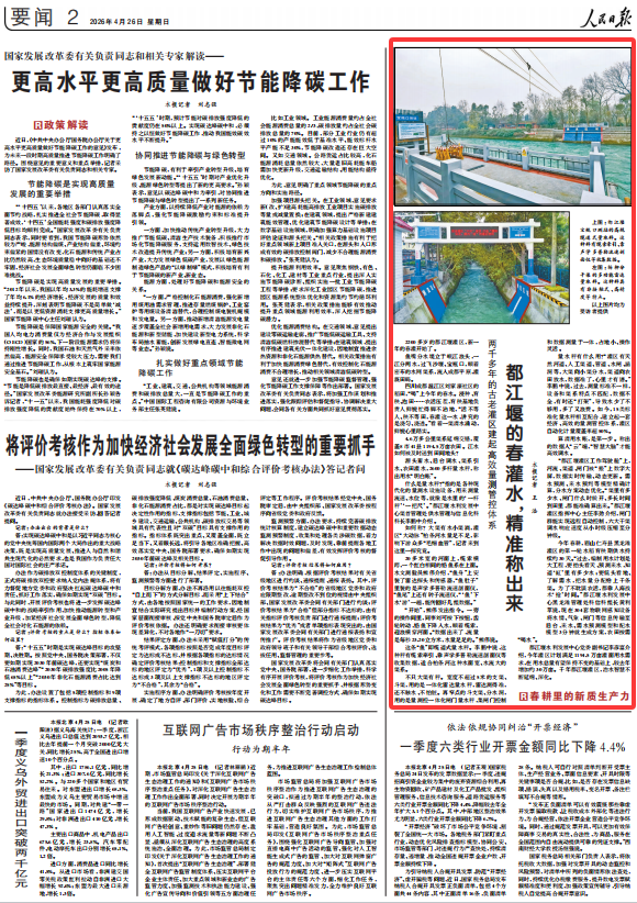 都江堰水利发展中心党委副书记李彦富介绍,今年灌区计划满足1194.5万亩灌面用水需求,在用水总量有望保持不变的基础上,较去年增加约30万亩。千年都江堰灌区,治水智慧不断延绵、深化。