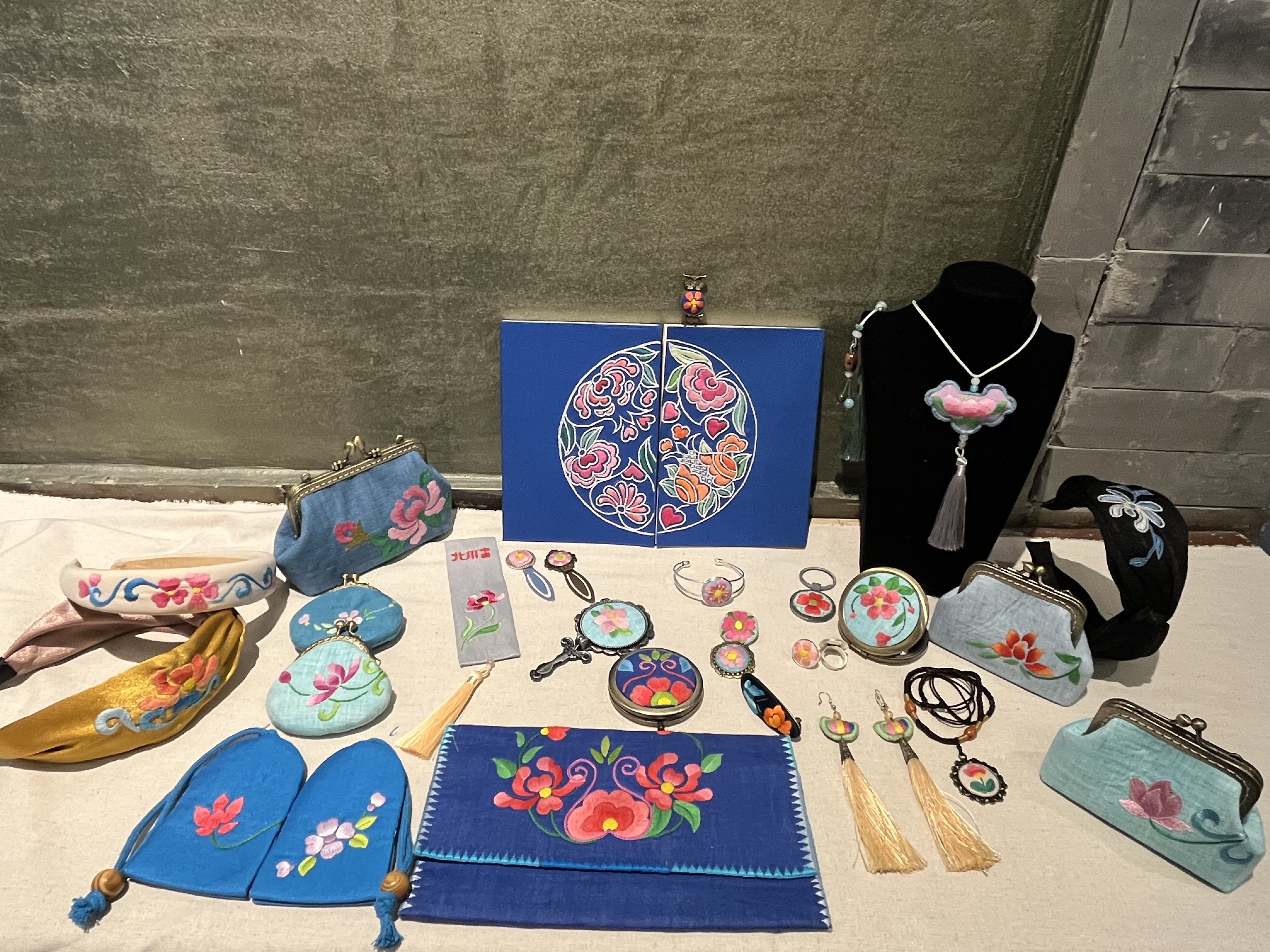 在传统模式中,羌绣培训生产的多是不尽符合现代审美的生活用品。而杨红莉把重心放在了文创方面,“以实用、实惠、艺术为导向”,让羌绣从“压箱底”的收藏变成了可触摸、可使用的日常之物。从围裙、衣帽到二十四节气主题的文创产品,从本地特产到亮相高奢珠宝品牌的晚宴和联动知名游戏IP,羌绣正在以更加积极和轻盈的姿态融入当代生活。