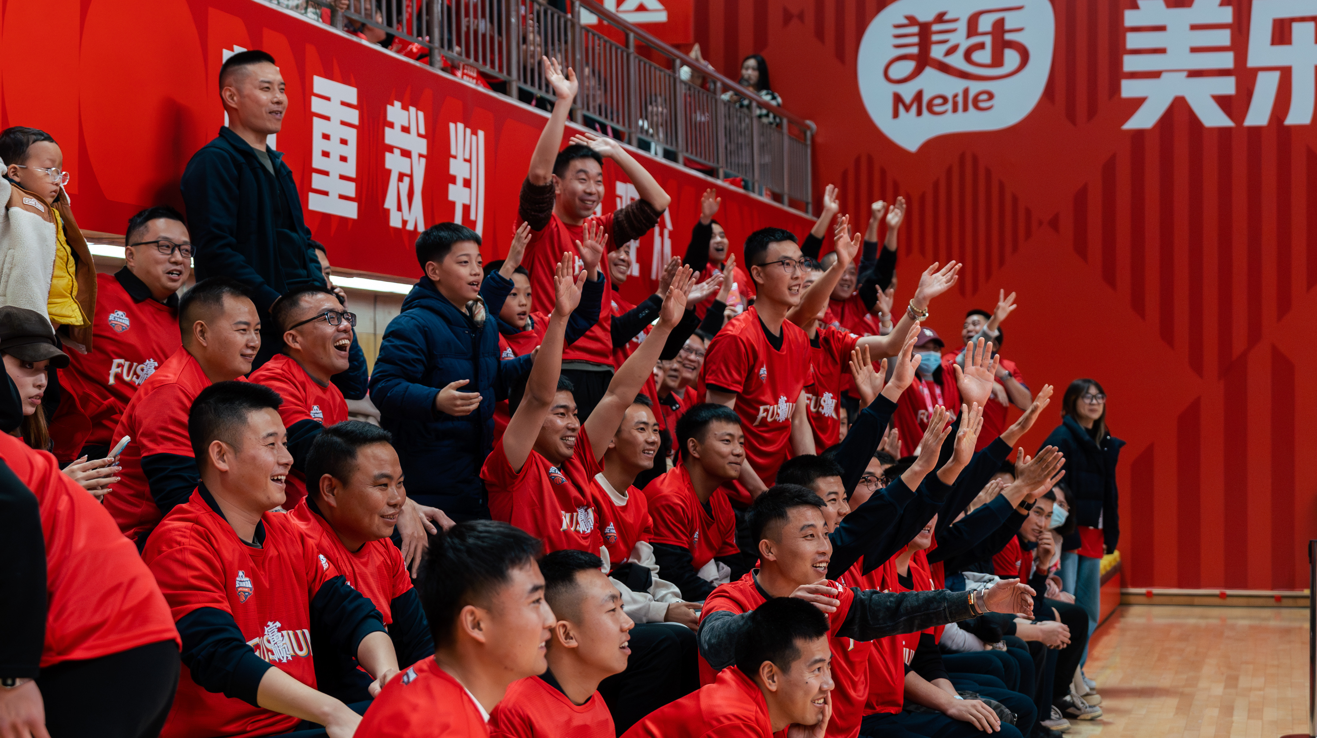 一到比赛日,富顺便化身红色的海洋,从场馆内到城市街头,从线下现场到线上云端,全城同频共振,全民共赴热爱。场馆内,红色应援服、红色旗帜、红色手环连成一片,球迷团从常规赛到总决赛,一场不落地追随呐喊,红色身影成为看台最鲜明的底色,他们用最持久的热情成为球队最坚实的“第六人”。场馆外,热度同样不减。宏帆广场等7大免费观赛点同步开放,超大屏幕实时直播赛事,市民扶老携幼齐聚一堂,为球队加油。