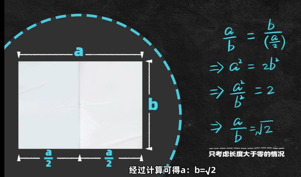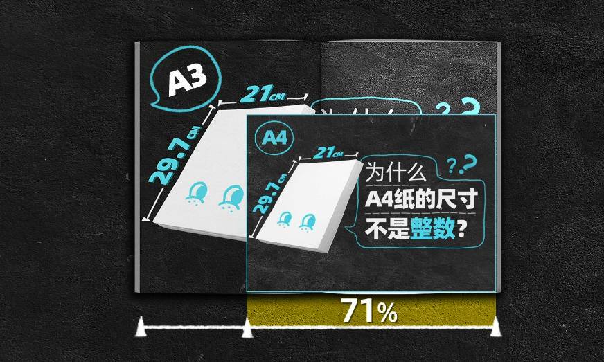 一张标准的A4纸尺寸为21厘米x29.7厘米。以人类图省事的天性来说,显然20、30这样的整数更加方便好用,A4纸的尺寸为何偏偏要逼死强迫症?若对折后比例不变,则可以列出如下等式: