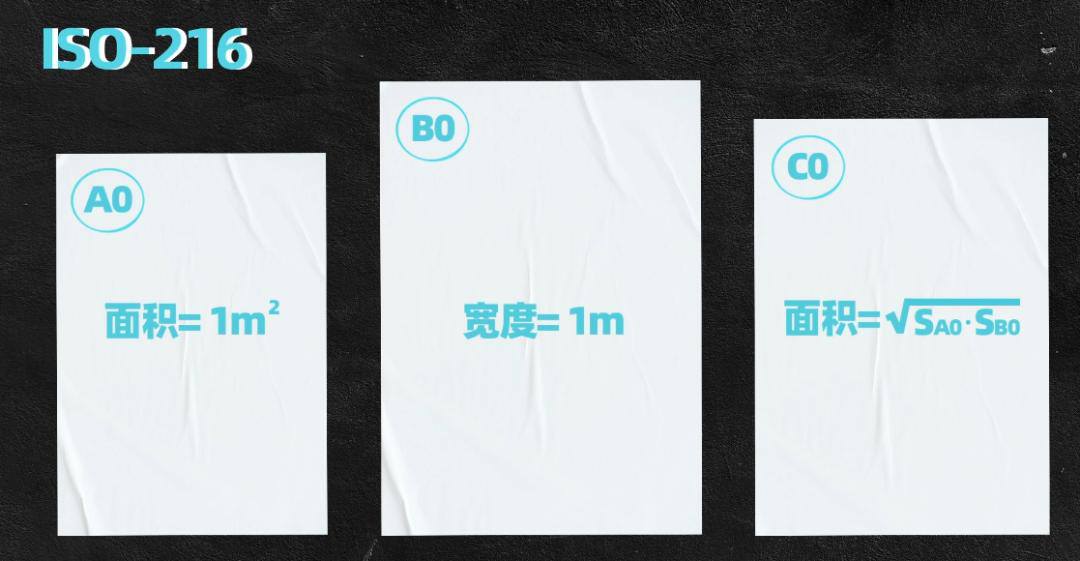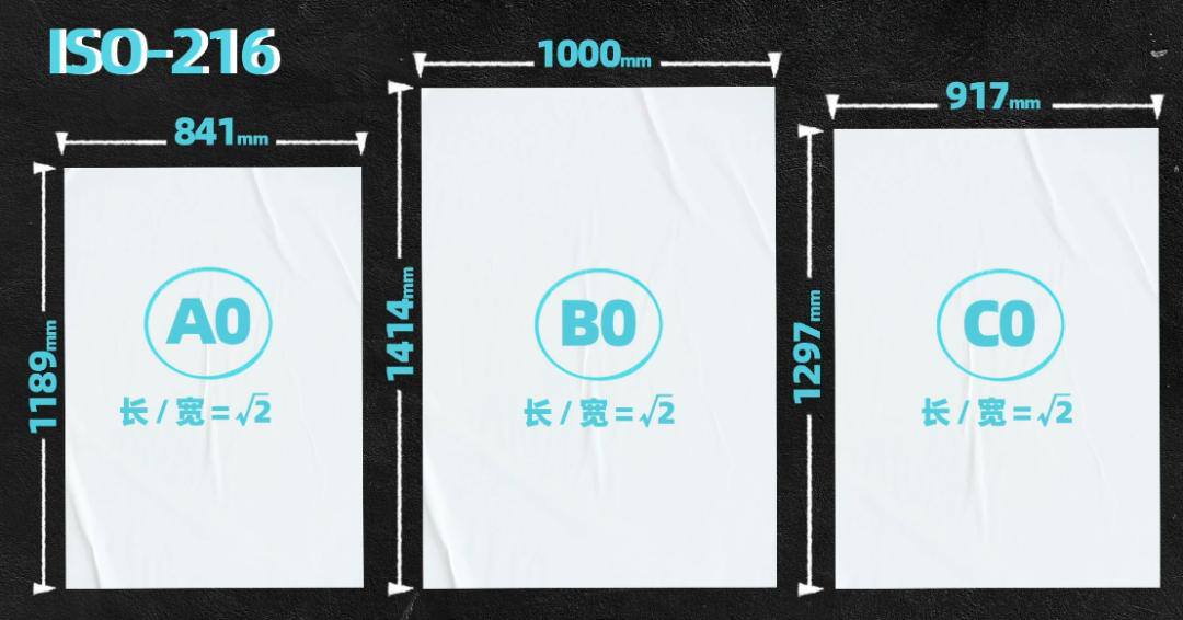 ISO-216有ABC三个系列,标准规定所有纸张的长宽比必须为√2,不同系列的纸张大小不同,同等编号下,A型纸面积最小,C型稍大,B型最大。