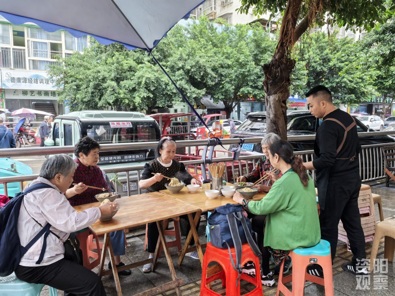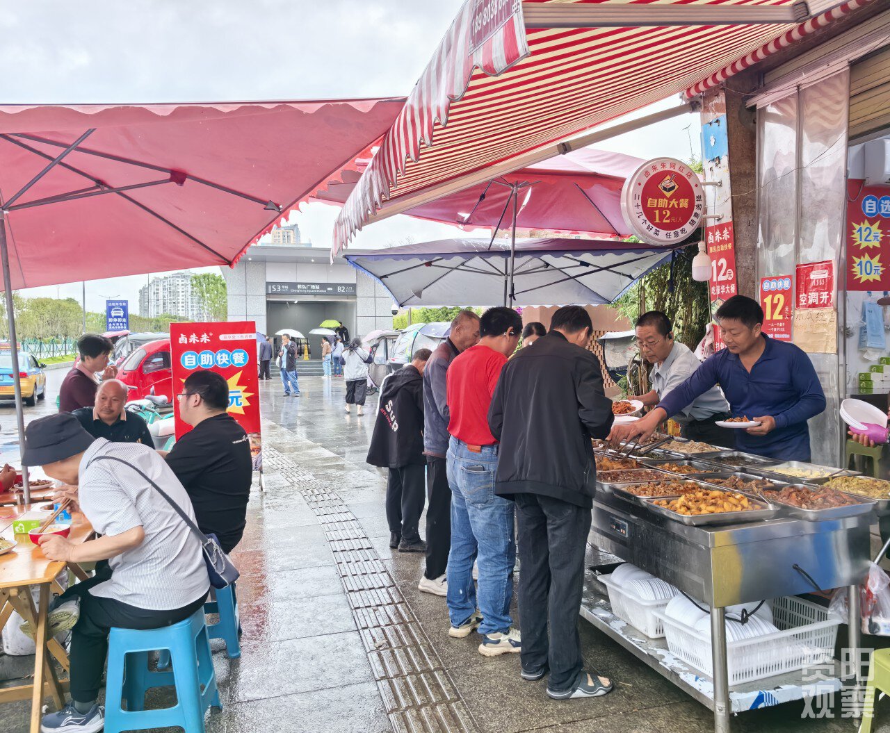 “跨城买菜”也带动了“跨城吃饭”。南门市场张得帅的面馆日均销量翻倍,周边空置店铺陆续被新餐馆填满。“晴天时一半是成都客人。”开业四个月的自助快餐店老板魏桃芳说,“有人每周固定来,买了菜再吃顿饭回成都。”