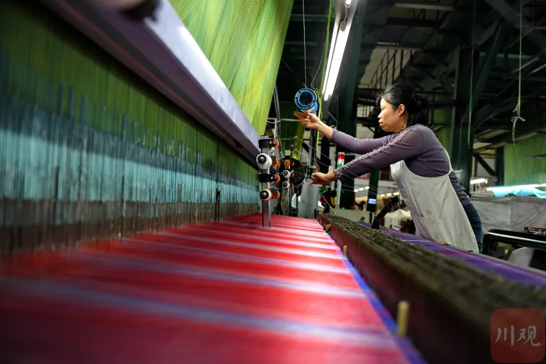 南充市嘉陵区工业园区内,工人正在制作古蜀锦面料(资料图)图据川观新闻