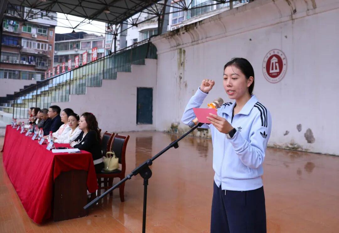 接着,裁判员代表王薪茹老师和运动员代表六年级6班李巍同学分别宣誓。