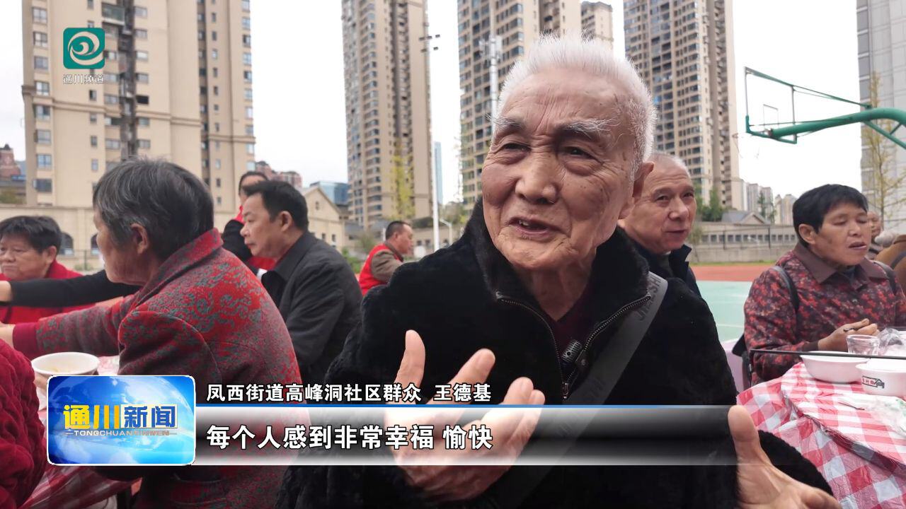 凤西街道高峰洞社区群众 王德基:这坝坝宴确实浓缩我们的感情,把我们几十年来这感情一下就回来了,这个吃起多香,身体也多好,每个人感到非常幸福、愉快。