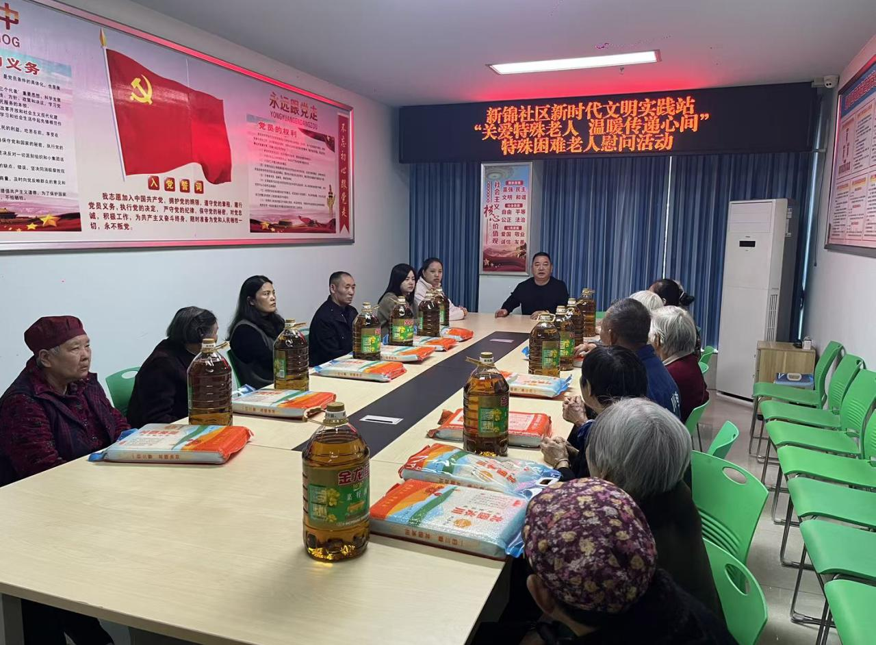 新锦社区以“尊老敬老庆重阳,文明实践扬新风”为主题,联合各共建单位,精心策划了一场沉浸式敬老活动。活动现场,文艺汇演率先拉开帷幕,舞蹈、合唱、戏曲等节目轮番上演,台下掌声不断;医疗志愿者团队同步开展爱心义诊,为老人提供血压测量、血糖检测、健康咨询等服务,耐心讲解秋冬季节常见疾病预防知识;党委班子与辖区困难老人开展座谈,促膝谈心,倾听生活需求,并送上米、油等慰问品,实实在在的便民服务,让老人们在家门口就感受到了关怀与温暖。