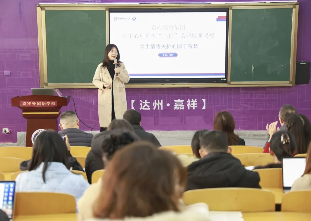 为系统提升教师队伍对学生心理危机的识别与干预能力,构建更具支持性的校园心理健康防护网,12月10日下午,一场主题为“学生情绪关护的园丁智慧”的专题讲座在达州嘉祥温暖开讲。本次活动在嘉祥心理健康与家庭教育服务中心的支持下,邀请到成都市锦江嘉祥外国语高级中学心育中心主任李昕老师主讲,为全体班主任、生辅教师及无课老师们带来了一场既有科学深度、又充满人性关怀的分享。 1 读懂情绪的信号