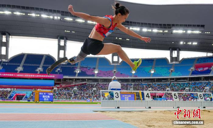 在女子跳远T63级决赛中,四川队选手陈忆梅以3米88的成绩获得金牌,并创造了新的全国纪录。
